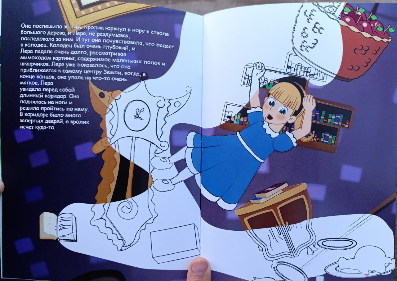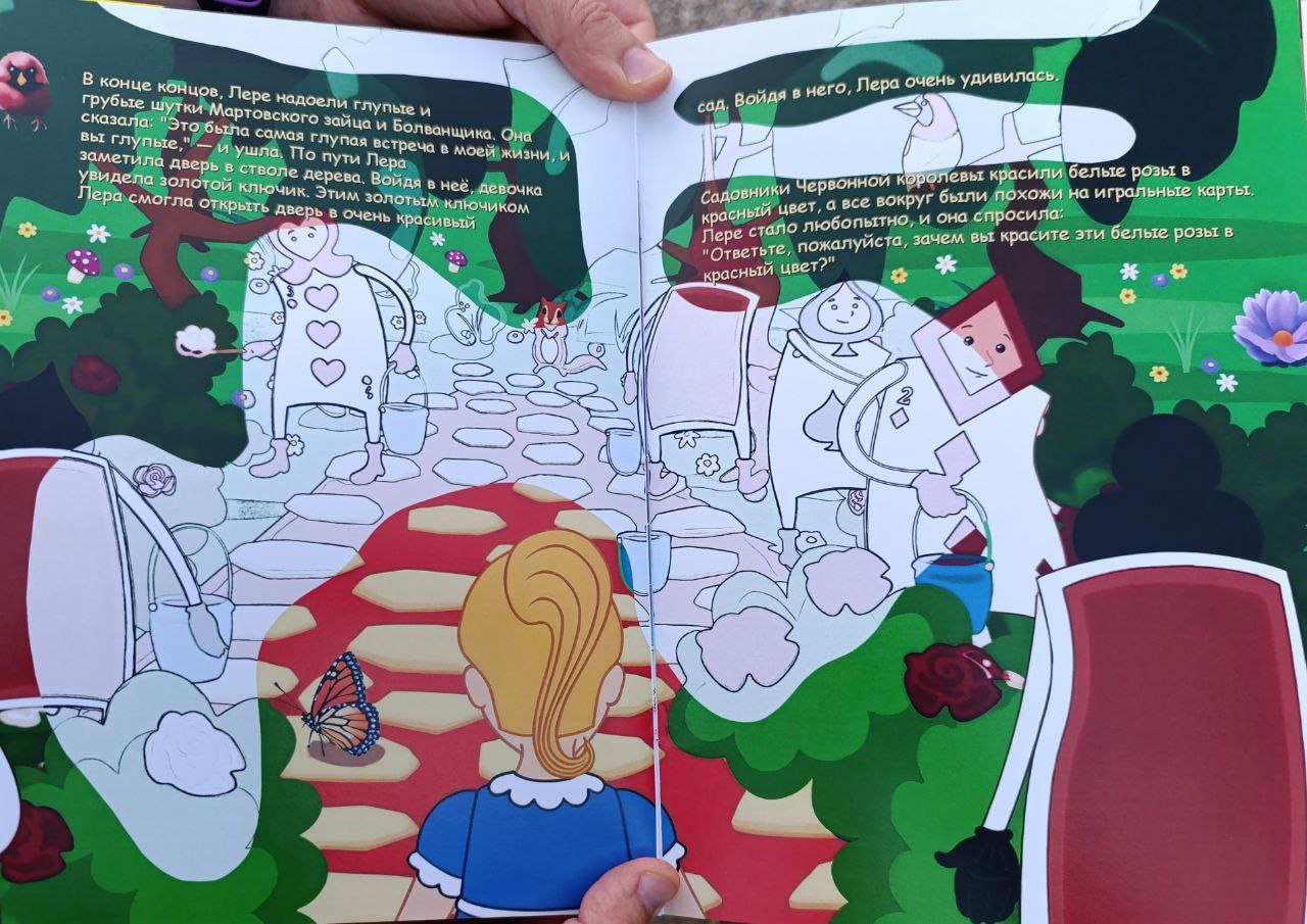 Pentru fetițe — o poveste în stilul „Alice în Țara Minunilor”.