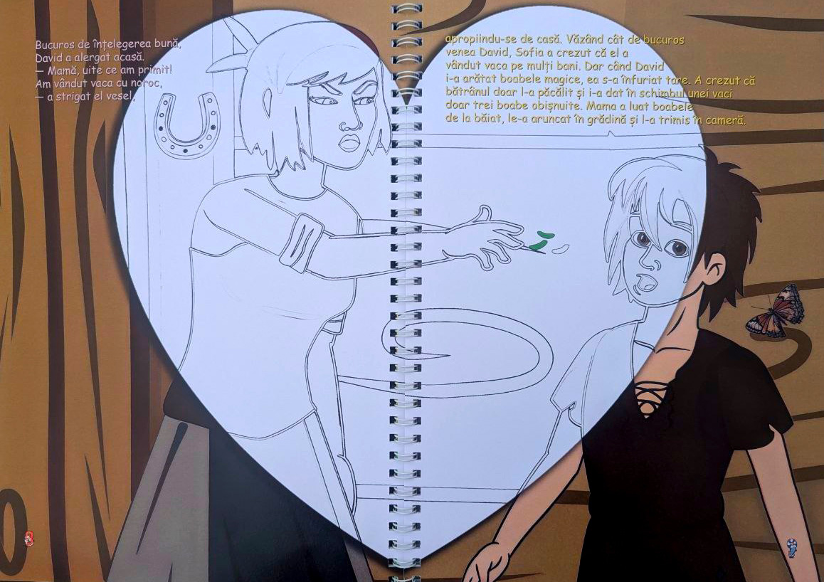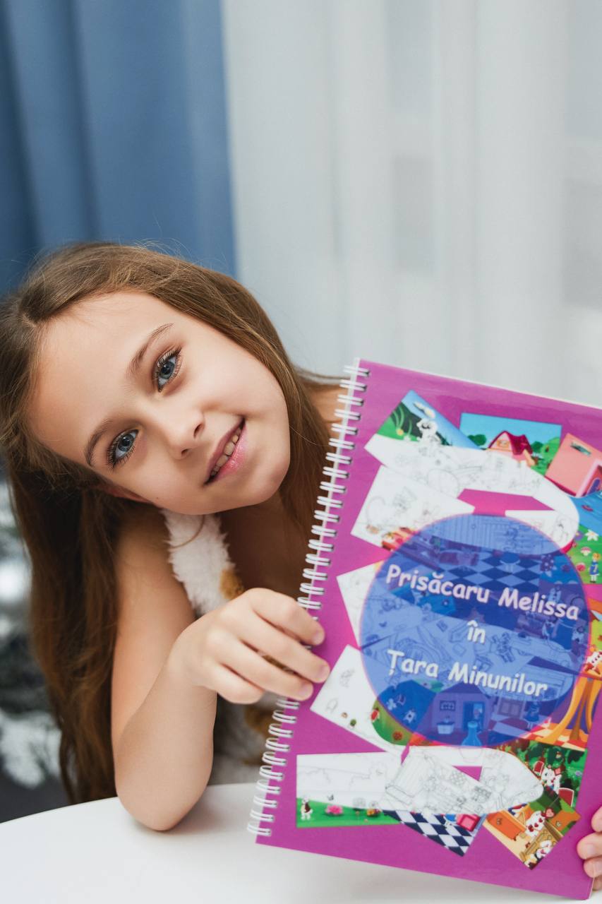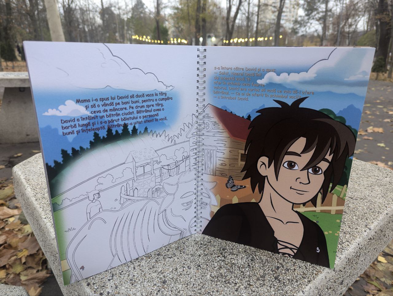 O carte în care micuțul dumneavoastră devine personajul principal al unei aventuri captivante. Aceasta nu este doar o poveste – este o istorie personalizată, pe jumătate carte de colorat și pe jumătate ilustrații viu colorate, cu tranziții magice între zonele color și cele alb-negru. Cartea este tipărită pe hârtie groasă și de calitate, cu copertă laminată și pagini cu spirală, pentru a fi ușor de colorat fiecare pagină în parte. Versiunile sunt disponibile în limba română și rusă.