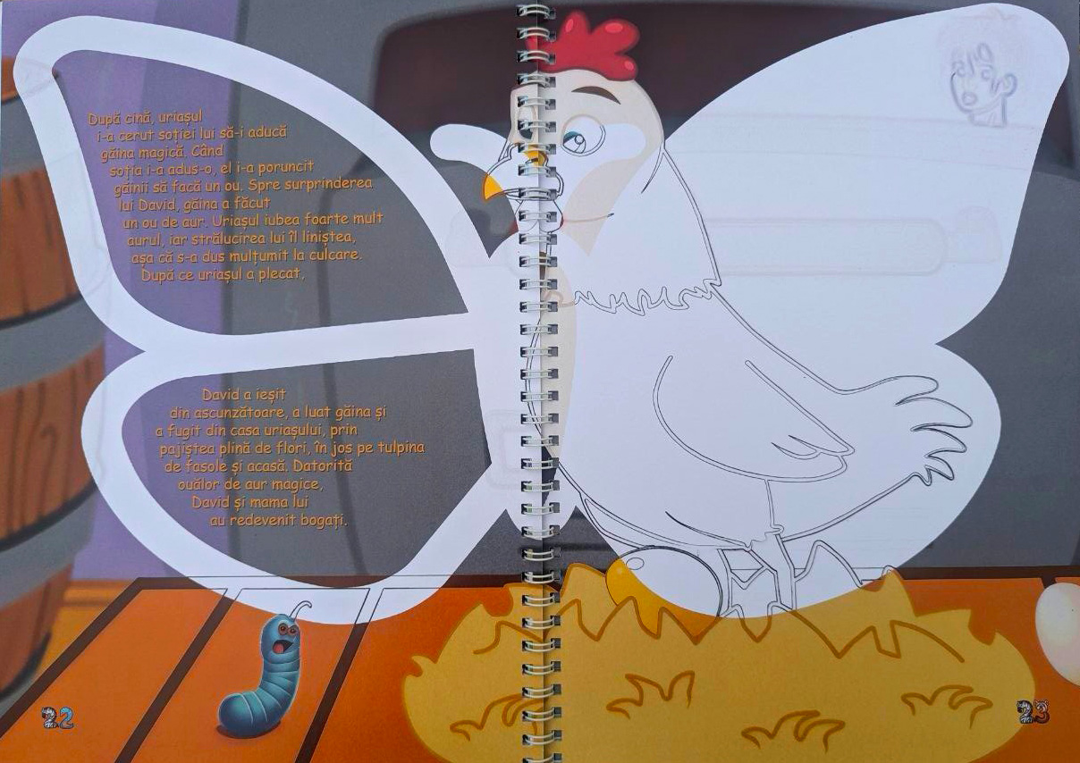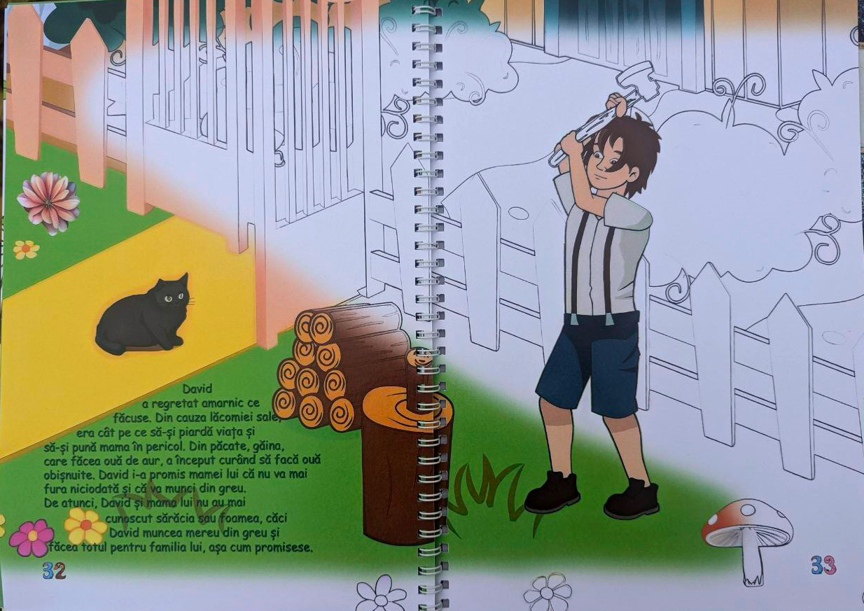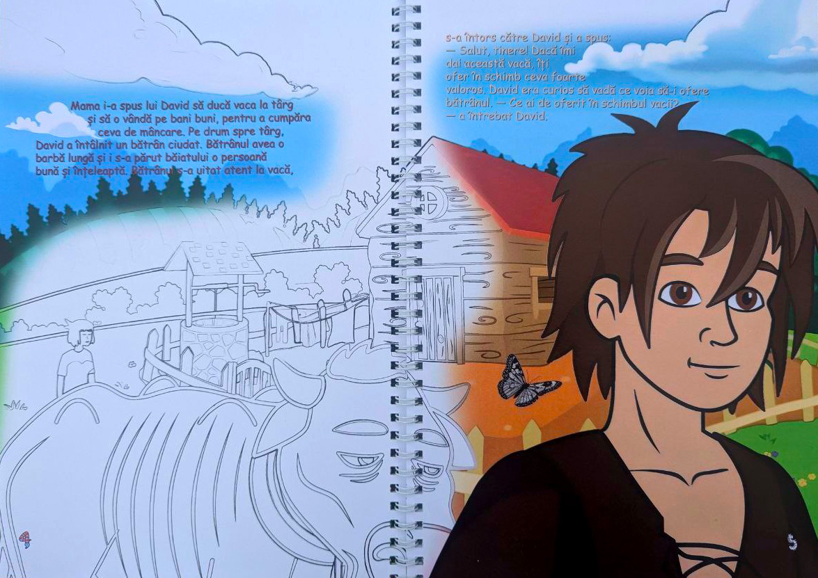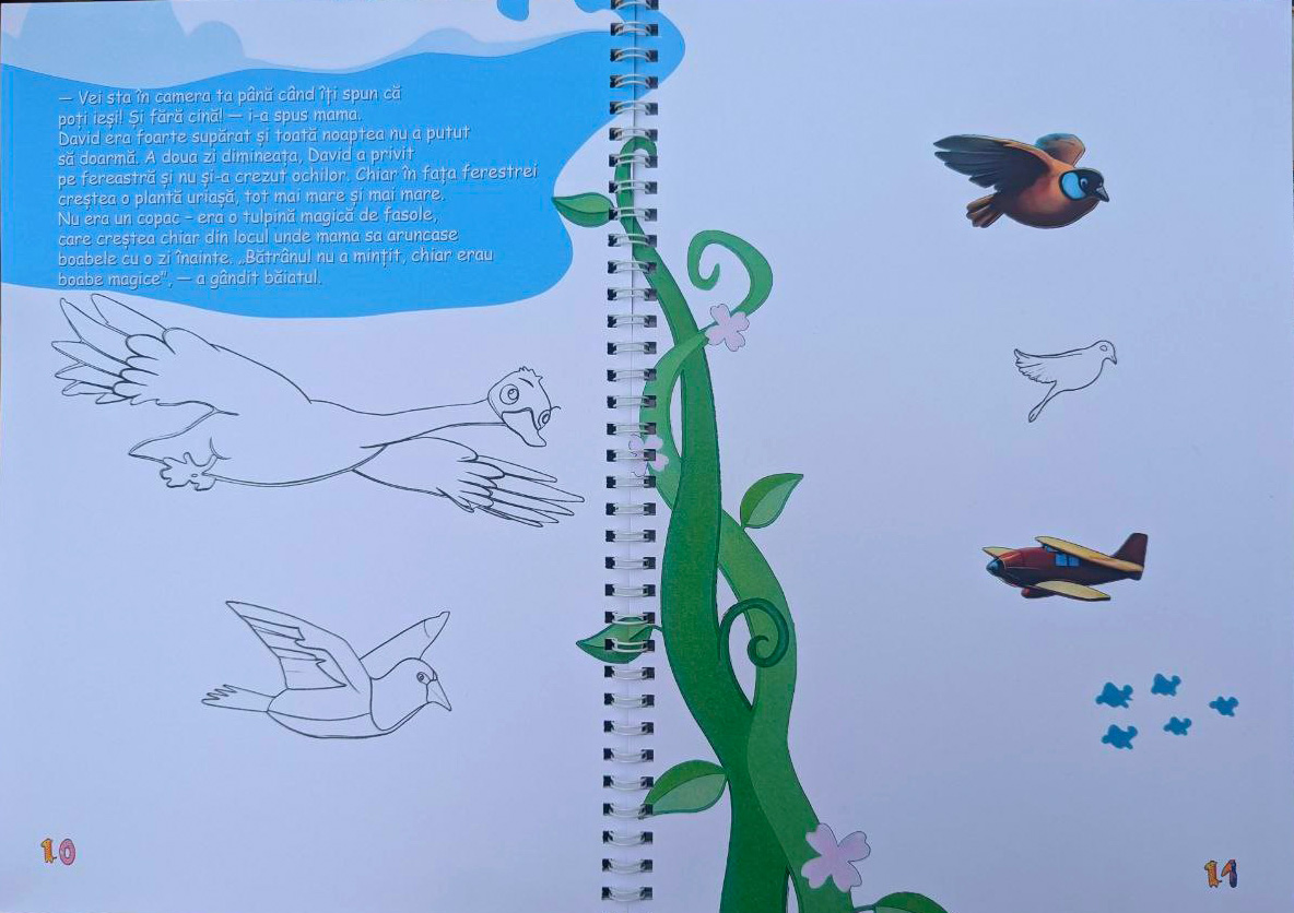 O carte în care micuțul dumneavoastră devine personajul principal al unei aventuri captivante. Aceasta nu este doar o poveste – este o istorie personalizată, pe jumătate carte de colorat și pe jumătate ilustrații viu colorate, cu tranziții magice între zonele color și cele alb-negru. Cartea este tipărită pe hârtie groasă și de calitate, cu copertă laminată și pagini cu spirală, pentru a fi ușor de colorat fiecare pagină în parte. Versiunile sunt disponibile în limba română și rusă.